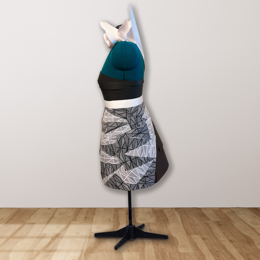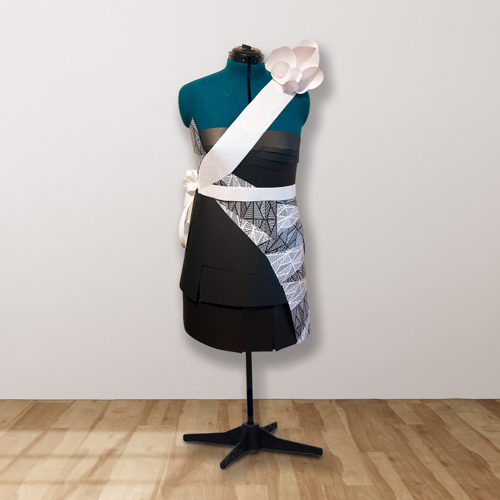 Type Chic is a celebration of the many ways typography can be used in design. Type is so often treated as a complement, but here it becomes the design itself. The black and white paper dress is patterned with letterforms from my favorite font, Baskerville, giving new life to a typeface often reduced to body copy. This project opens doors for old, overused fonts to be seen in fresh and unexpected ways.